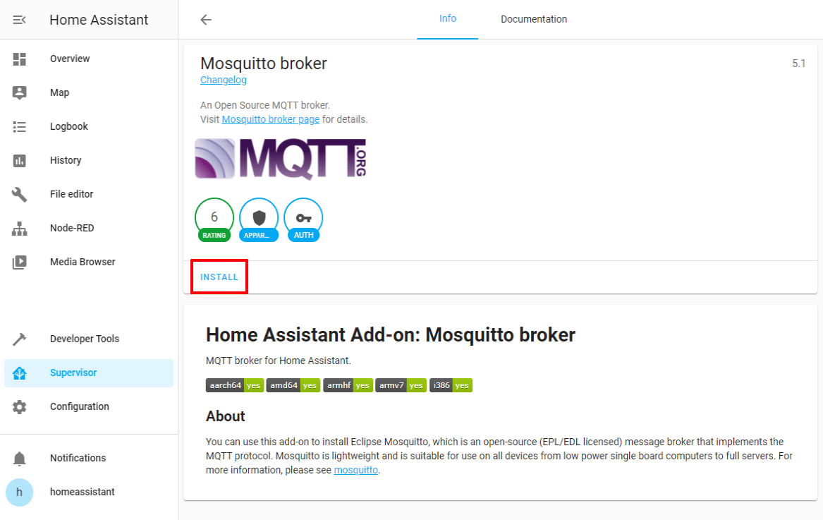 Please refer to the official documentation on how to install and make initial configuration of your instance. Also you'll need MQTT broker and MQTT integration installed and configured within Home Assistant. If you have no broker yet, you can install it with a few steps: